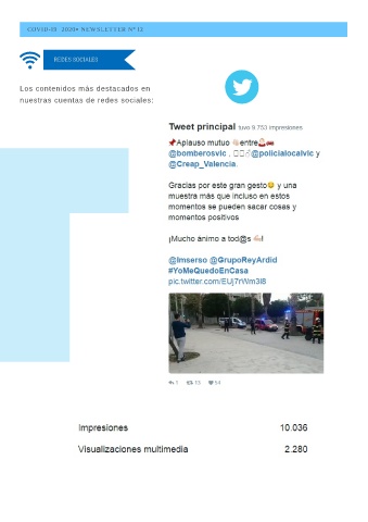 COVID-19 2020• NEWSLETTER Nº 12 REDES SOCIALES Los contenidos más destacados en nuestras cuentas de redes sociales: