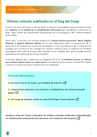 Durante los meses de marzo y abril de 2025, el blog del Creap publicó varias entradas escritas