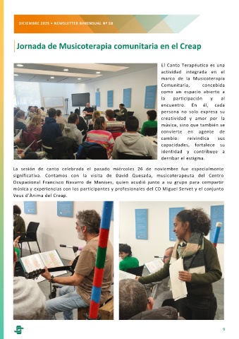 música y experiencias con los participantes y profesionales del CD Miguel Servet y el conjunto