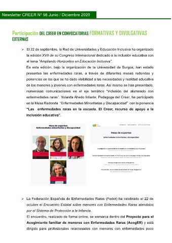 enfermedades raras”. Yolanda Ahedo Infante, Pedagoga del Creer, ha participado
