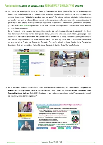 Participación DEL CREER EN CONVOCATORIAS FORMATIVAS Y DIVULGATIVAS EXTERNAS