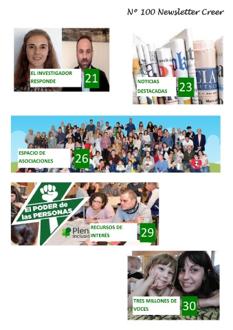Nº 100 Newsletter Creer EL INVESTIGADOR RESPONDE 21 NOTICIAS 23 DESTACADAS ESPACIO DE ASOCIACIONES 26 RECURSOS DE INTERÉS 29 TRES MILLONES DE VOCES 30 Newsletter Creer Nº 100 / 3