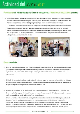 Participación DE PROFESIONALES DEL Creer EN CONVOCATORIAS FORMATIVAS Y DIVULGATIVAS EXTERNAS