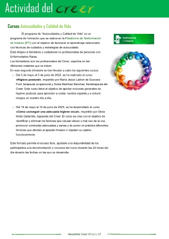 En este segundo trimestre se han llevado a cabo los siguientes cursos: