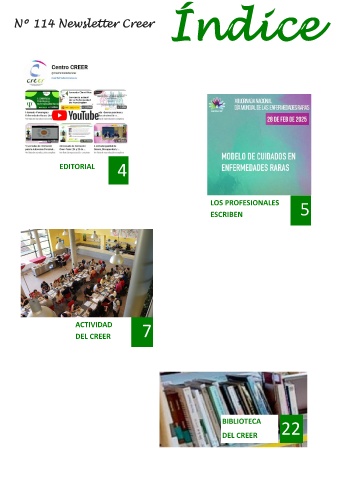 Índice Nº 114 Newsletter Creer 4 EDITORIAL LOS PROFESIONALES 5 ESCRIBEN ACTIVIDAD 7 DEL CREER BIBLIOTECA 22 DEL CREER Newsletter Creer Nº 114 / 2