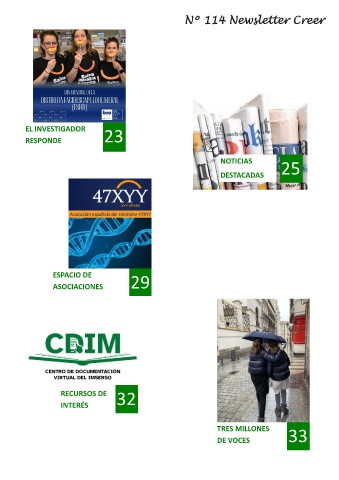 Nº 114 Newsletter Creer EL INVESTIGADOR RESPONDE 23 NOTICIAS 25 DESTACADAS ESPACIO DE ASOCIACIONES 29 RECURSOS DE 32 INTERÉS TRES MILLONES DE VOCES 33 Newsletter Creer Nº 114 / 3
