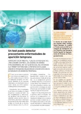 las metabolopatías o enfermeda- la genética clínica en España, “los vas o acciones o la labor de per-