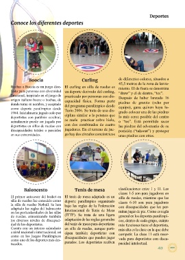 otros deportes. Tanto en nuestro pabellón como fuera de él participamos en diferentes actividades y com- Boocia Curling de diferentes colores, situados a