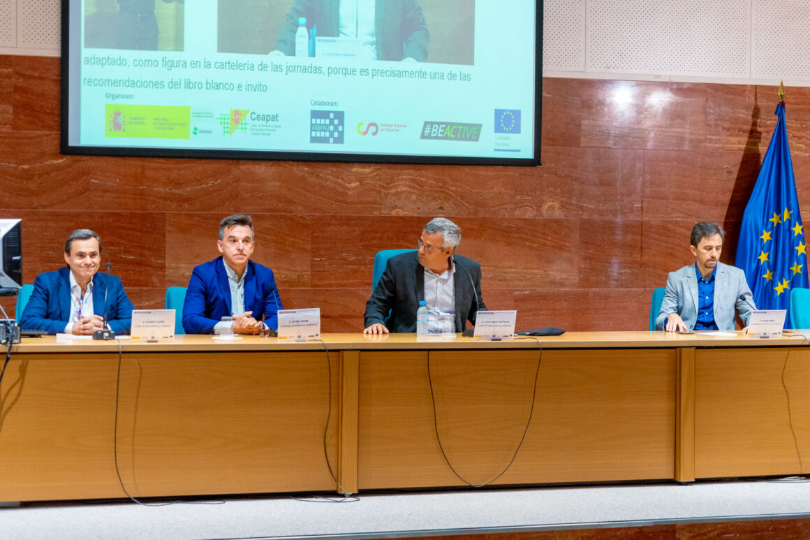 En la primera mesa redonda moderada por Luis Leardy, director de comunicación y relaciones externas del Comité Paralímpico Español (CPE); se abordó la futura ley del deporte que fue valorada muy positivamente por el impulso que dará al deporte practicado por personas con discapacidad. El Comité Paralímpico Español, de la mano de su presidente Alberto Jofre expuso con claridad los términos y limitaciones que encuentran hoy en día los deportistas con discapacidad, desgranando todos los puntos relevantes por los que se deben atajar los problemas. Seguido del CPE habló Aitor Canibe, del Consejo Superior de Deportes (CSD), que explicó la línea desde la cual su institución trabaja para aportar una mayor inclusividad en el deporte de las personas con discapacidad, remarcando la modernización y financiación en materia de accesibilidad en las instalaciones gracias a los fondos europeos de recuperación. Esta primera mesa la cerró Javier Pérez Tejero, director de la Cátedra Fundación Sanitas de Deporte Inclusivo de la Universidad Politécnica de Madrid (CEDI-UPM), que habló sobre el Deporte Inclusivo, la orientación de las Actividades Físicas y el deporte para personas con discapacidad, y línea de investigación en materia de accesibilidad e inclusión en el deporte para personas con discapacidad.