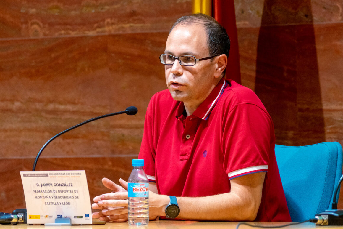 La tercera mesa redonda fue moderada por Miguel Ángel Toledo Bachiller, deportista paralímpico de tenis de mesa adaptado. En esta mesa tuvieron cabida dos propuestas de la mano de Javier González Lázaro, Presidente de la Federación de Deportes de Montaña, Escalada y Senderismo de Castilla y León, y de Carlos Rolandi, director técnico de la Fundación También. Por una parte Javier expuso el programa de montañismo inclusivo desarrollado por la Federación, las colaboraciones que desarrollan junto a otras instituciones como universidades, federaciones, asociaciones, etc. y diferentes ejes de tratamiento de la actividad física y los deportes en el medio natural. Por su parte, Carlos Rolandi nos habló de las iniciativas de la Fundación También, cómo surgió ésta, y cuáles son las principales dificultades que encuentran en la organización de actividades deportivas con personas con discapacidad. Ambos resaltaron el papel del apoyo humano requerido para la práctica deportiva de personas con discapacidad.