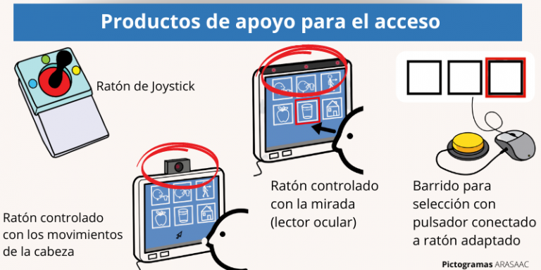 Como puede observarse, los productos de apoyo para el acceso son diferentes a los dirigidos a la comunicación. Su objetivo es facilitar que la persona pueda manejar su programa/aplicación para la comunicación  de forma independiente.