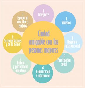 Es un proyecto impulsado por la Organización Mundial de la Salud (OMS) como respuesta al envejecimiento de la población y con el objetivo de contribuir a la creación de entornos y servicios que promuevan y faciliten un envejecimiento activo y saludable. Por una ciudad o comunidad amigable con el envejecimiento entendemos aquella en la que las políticas, los servicios y las estructuras relacionadas con el entorno físico y social de una localidad se diseñan y reorganizan para apoyar y permitir a las personas mayores vivir dignamente, disfrutar de una buena salud y continuar participando en la sociedad de manera plena y activa.